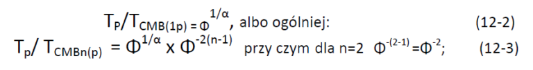 Proponuję w tym miejscu lektury spojrzeć na ilustrację 12-2 w tym podrozdziale. Wytłuszczone zdanie na poprzedniej stronie znaczy, że dla wartości α rekomendowanej przez CODATA stosunek TP / TCMB1(p) powinien być równy Φ137,035999.